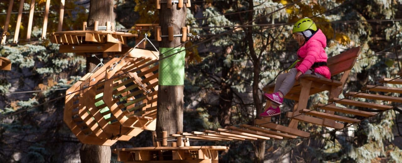 - Две детские трассы - для самых маленьких почитателей веревочного спорта;