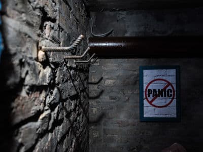 Квест пространство "Don't panic" расположено по адресу улица Панаса Мирного, 3, что в 10 минутах ходьбы от метро "Печерская". Само помещение расположено под землей, на площади более 100 квадратных метров.