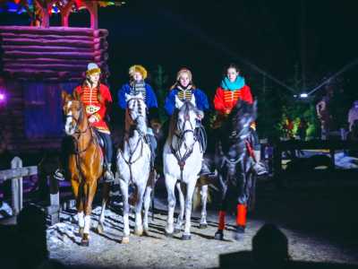 Гостей ждут феерические празднования в стиле Киевской Руси, с конно-трюковыми выступлениями, интерактивными зажигательными шоу и традиционными древнеславянскими забавами. А также: Главная резиденция Нового Года, катание на лошадях, аттракцион - канатный спуск, мастер-классы, продажа сувениров ручной работы, флэш-мобы, розыгрыши подарков, горячие напитки и вкусные блюда из костра.
