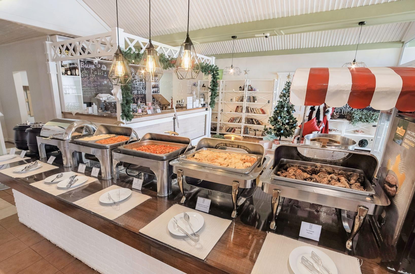 Гости комплекса могут насладиться изысканными блюдами в ресторане Chalet, который предлагает меню украинской и европейской кухни. Доступно трехразовое питание по системе «шведский стол», а также отдельные заказы блюд в ресторане. Для празднований предусмотрены банкетные залы.