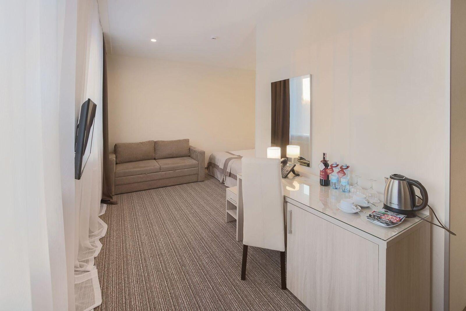 Все номера оснащены ортопедическими матрасами, кондиционерами, телевизорами, мини-барами, сейфами, WiFi и другими удобствами. В некоторых номерах возможно размещение дополнительных гостей.