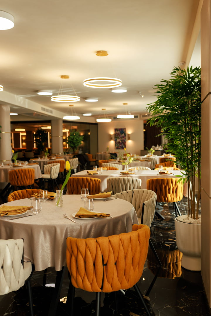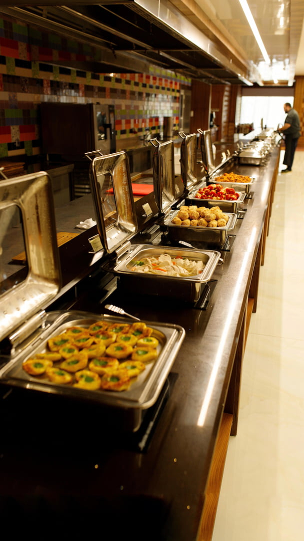 На территории комплекса работает ресторан со «шведским столом», где подают разнообразные блюда украинской и мировой кухни, включая диетические варианты. Отдельно работает ресторан азиатской кухни с авторским меню.