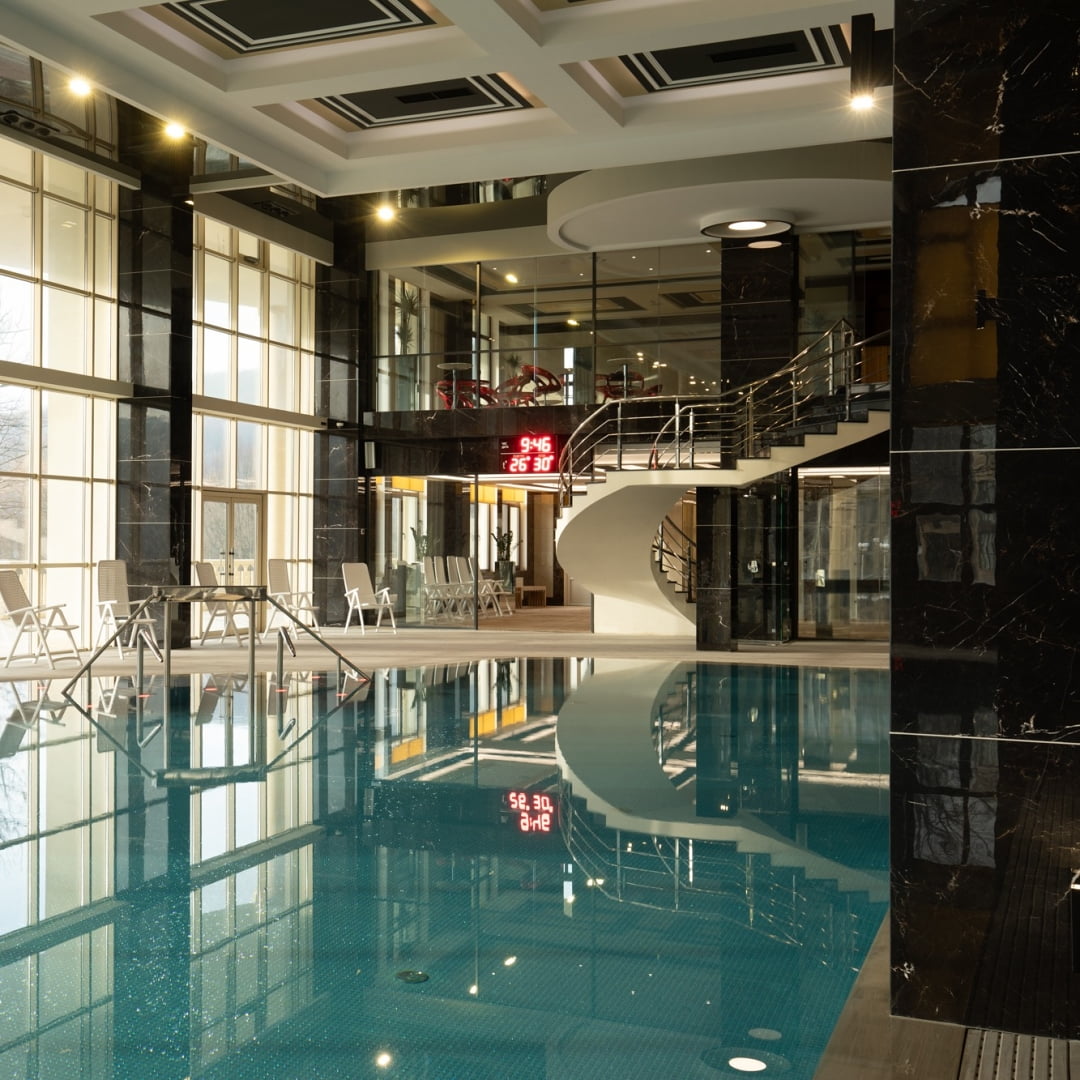 Комплекс ориентирован как на спокойный, так и на активный отдых. Гости могут проводить время в большом SPA-центре с широким выбором процедур, бань и ритуалов, а также посещать аквазону с несколькими бассейнами, включая открытые летние. Для релакса доступны джакузи, купели, арома-гроты и соляная градирня.