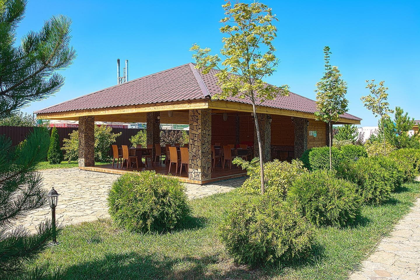 | Кухня | ресторан европейской кухни, летний бар, терраса, беседки |