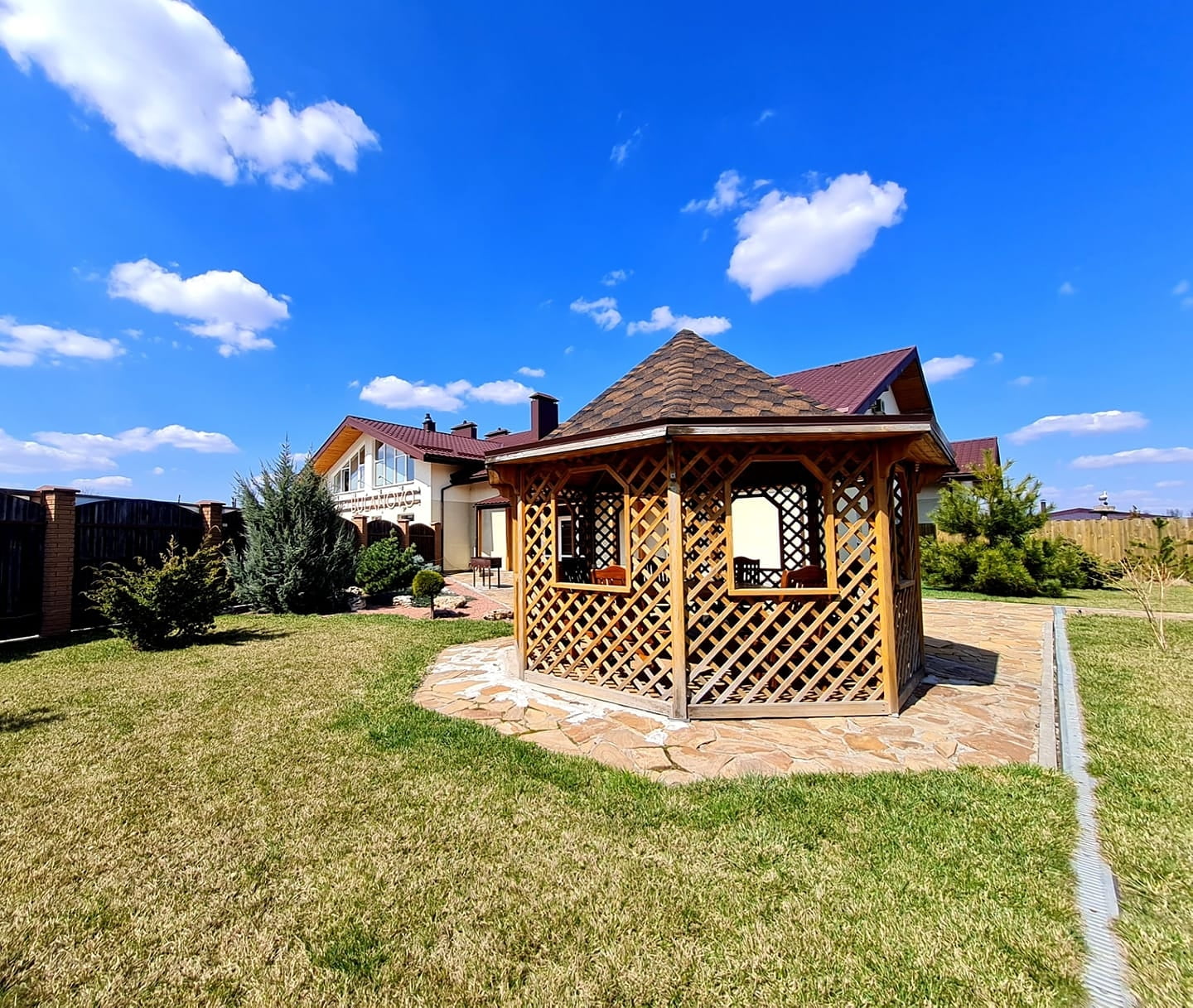 Любители отдыха на свежем воздухе могут воспользоваться беседками у водоема, зонами барбекю и прогулочными пространствами. Для активного досуга предусмотрена спортивная площадка, а для самых маленьких гостей — детская площадка с качелями и горками. Комплекс также подходит для организации праздников, семейных событий и выездных свадебных церемоний.