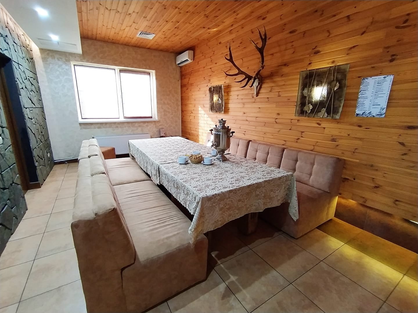 На территории комплекса работает ресторан на 60 мест, где подают блюда украинской и европейской кухни. Заведение сочетает уютную атмосферу, внимательный сервис и продуманное меню. Особой изюминкой является пиво собственного производства «Фамильное», которое дополняет гастрономические впечатления гостей.