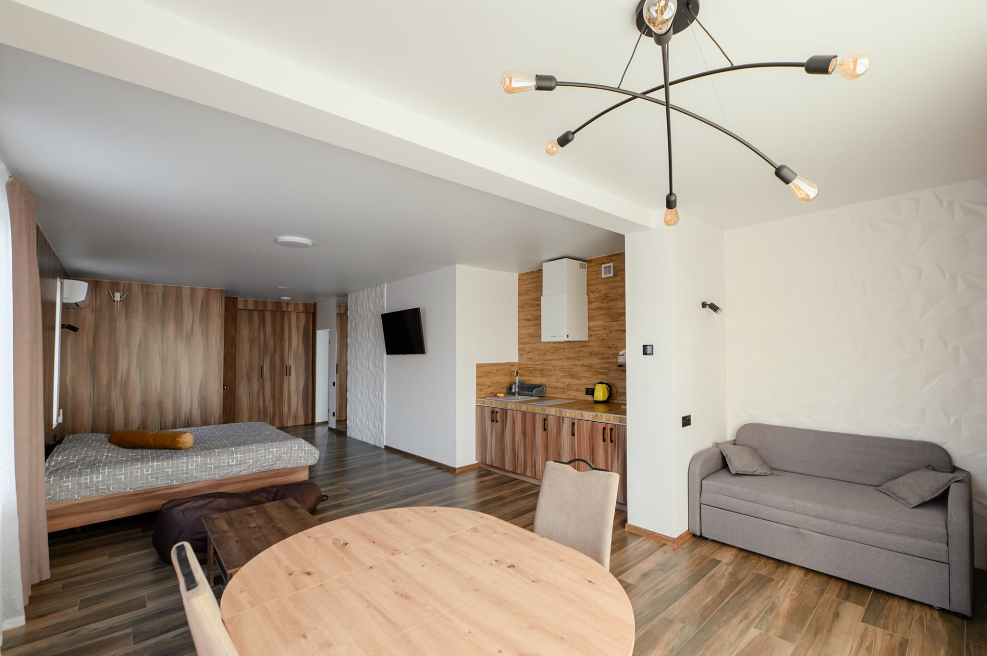 - гостиничные номера с кухней, кондиционером, Wi-Fi, холодильником и телевизором;