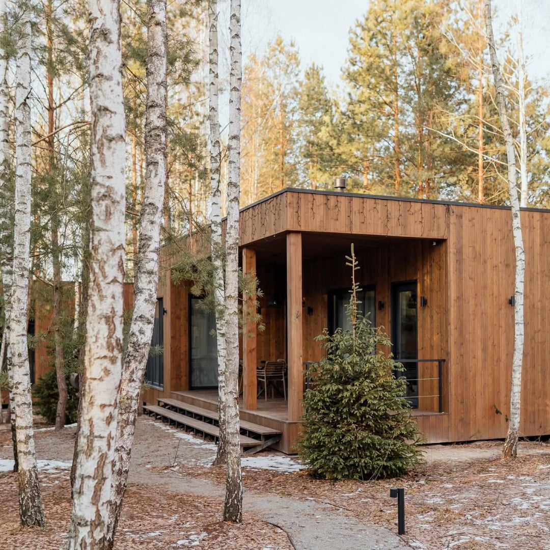 Загородный комплекс DOGODA - это идеальное место для тех, кто ищет спокойствие, комфорт и единение с природой. Расположенный на опушке села Дзвонковое, комплекс окружен сосновыми и березовыми лесами, а неподалеку расположена живописная долина реки Ирпень. Благодаря удобному расположению - всего час-полтора езды от Киева - DOGODA привлекает гостей, которые хотят отдохнуть на природе, не выезжая далеко от города. Одним из главных преимуществ комплекса являются индивидуальные коттеджи с собственными саунами, каминами и панорамными окнами, которые создают уютную атмосферу и позволяют по-настоящему расслабиться.