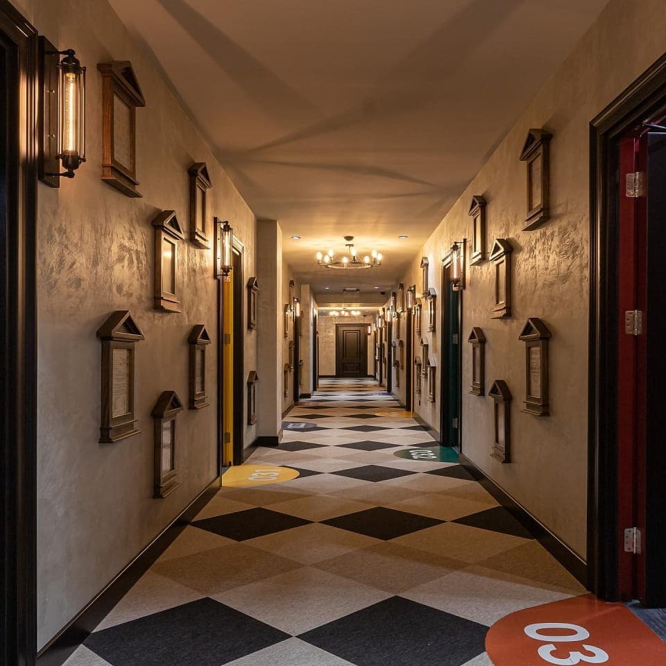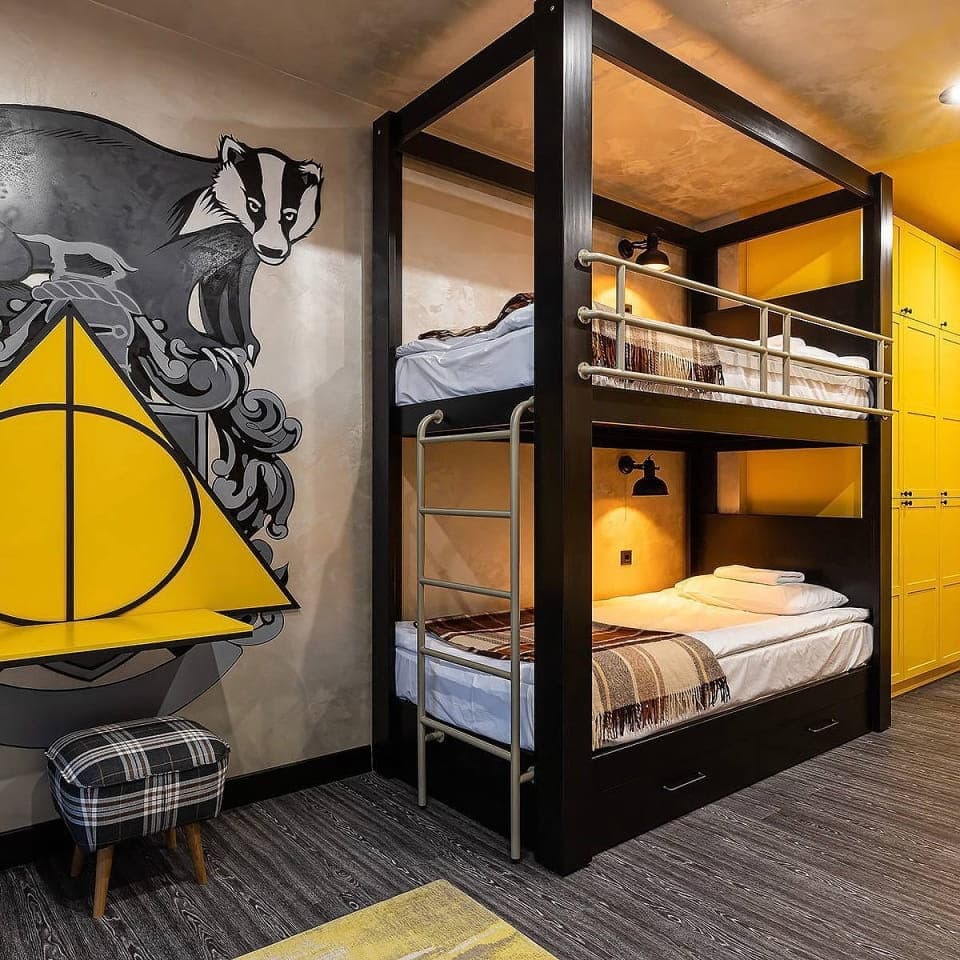 - комнаты в стиле Hogwarts - это 6-местные тематические комнаты, расположенные на 2-м этаже, с дизайном, инспирированный магической историей Хогвартса: Гриффиндор, Рейвенкло, Хаффлпафф и Слизерин. Выберите свой любимый факультет и оставайтесь в месте настоящей магии;