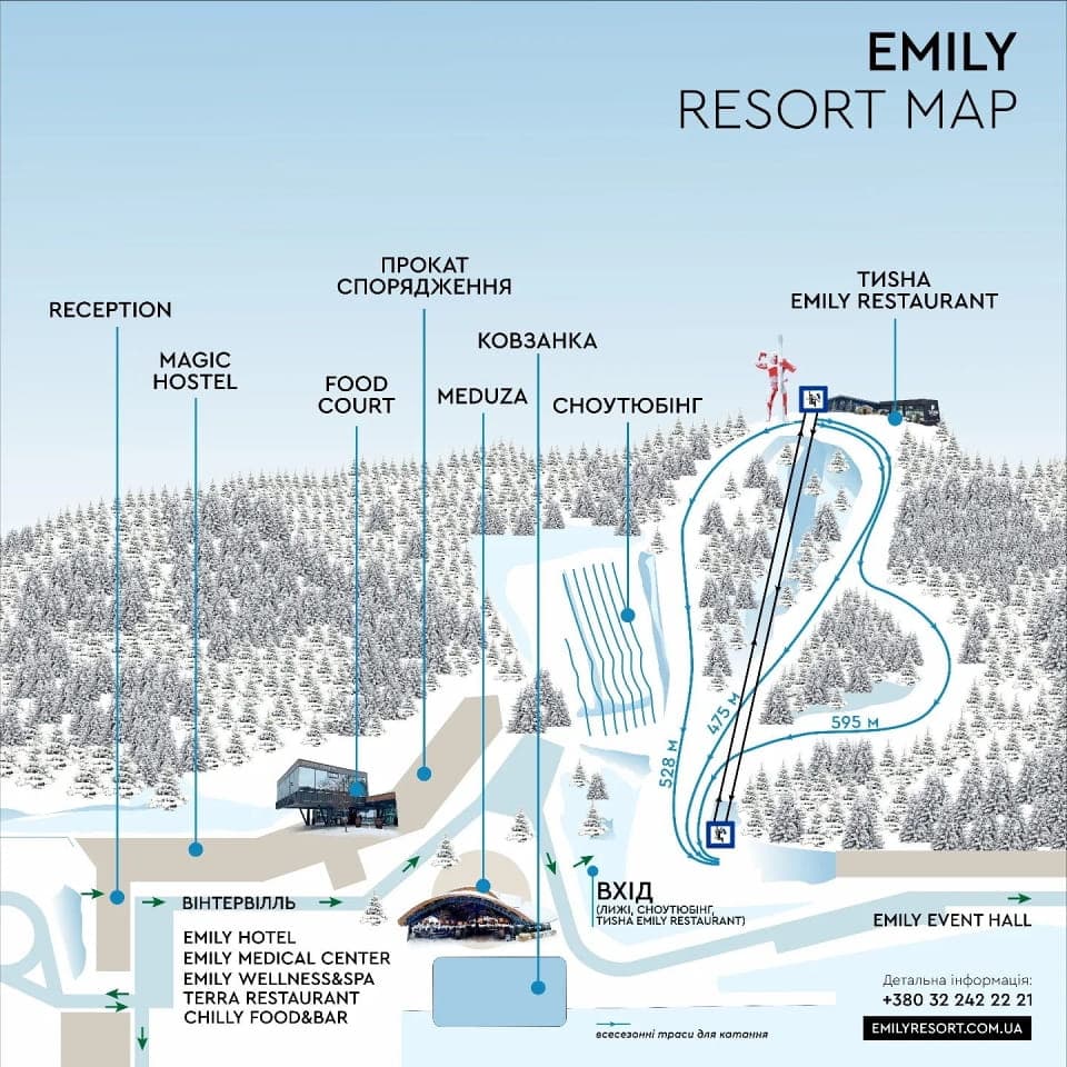 Тюбинг парк и лыжные трассы не закрываются даже летом, ведь имеют специальное всесезонное покрытие и вы сможете совершенствовать ваши лыжные навыки даже в летнюю жару, но большинство отдыхающих в теплое время года едут сюда за другим - "Emily Aquatoria", где вас ждут бассейны с кристально чистой водой и просторные песчаные пляжи. Заведение предлагает незабываемые водные аттракционы, маленькие гости будут в восторге от детского аквапарка с чрезвычайно разнообразными развлечениями.