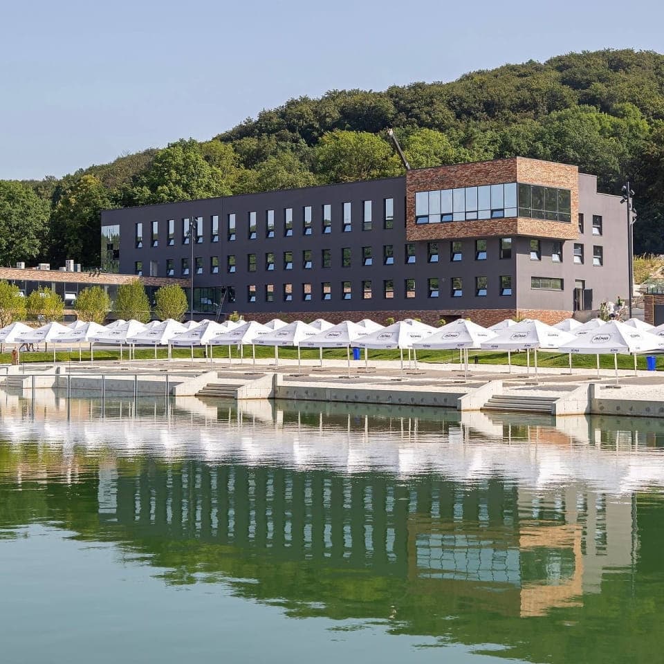 Каждый гость сможет насладиться роскошным интерьером, который создан талантливыми дизайнерами. Из окон отеля открывается панорамный вид на Винниковское озеро и природный ландшафт, что обеспечивает максимальный релакс и наслаждение от пребывания здесь.