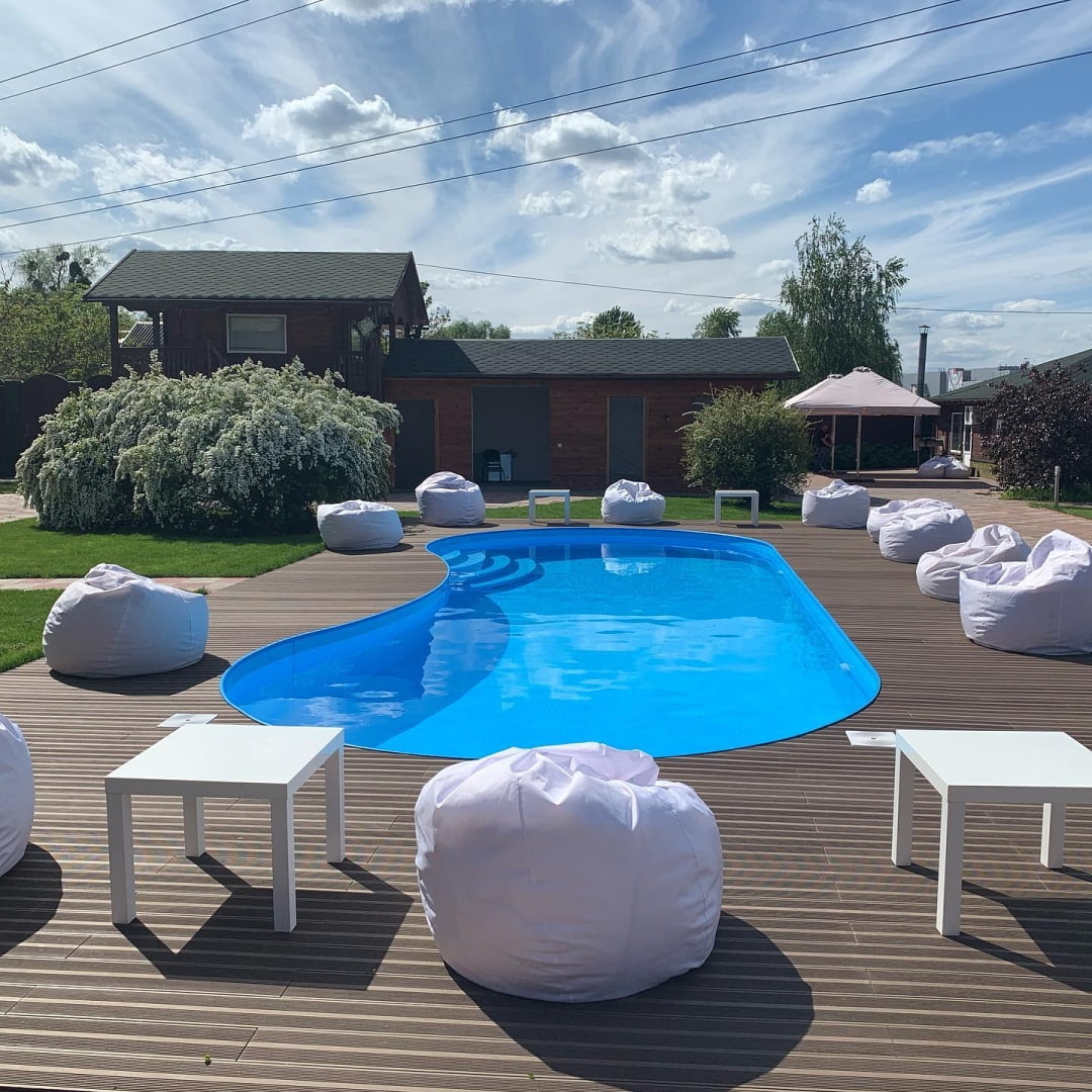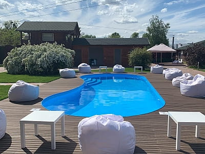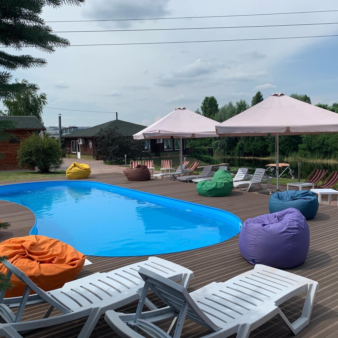 - Бассейн с шезлонгами для комфортного отдыха на солнце;