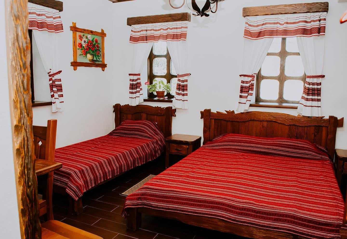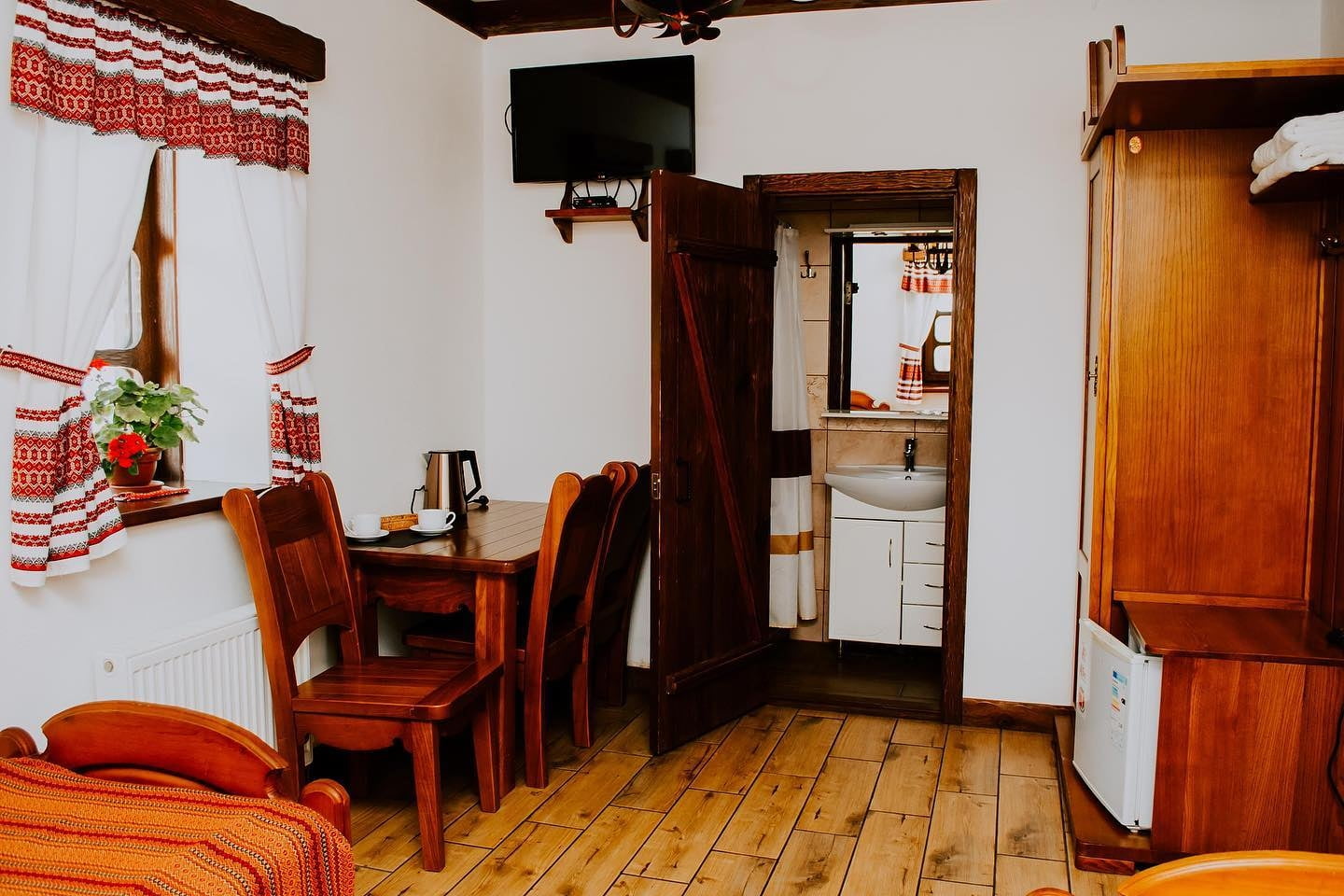 Гостям доступно проживание в гостиничных номерах, современных коттеджах и отдельном охотничьем доме. Номера и коттеджи оформлены в традиционном украинском стиле, но оборудованы всеми базовыми удобствами: санузлом, душем, климатической техникой и бытовыми приборами. Охотничий дом рассчитан на большую семью или компанию и имеет собственный двор, барбекю, беседку и камин.
