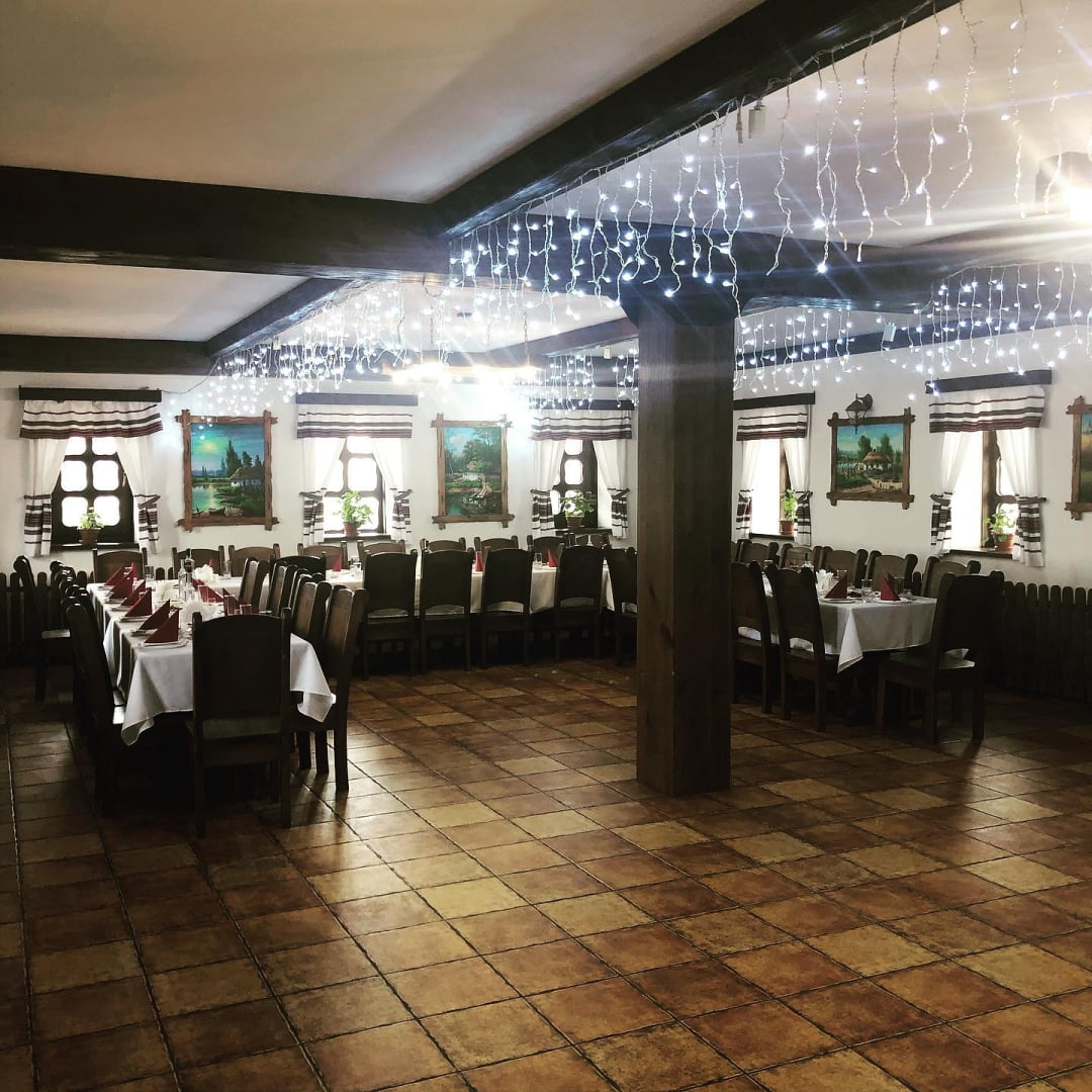 Для гостей, проживающих в коттеджах и охотничьем доме, предусмотрены кухни с посудой, что позволяет самостоятельно готовить еду. Комплекс также подходит для камерных торжеств и семейных событий.