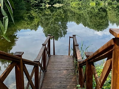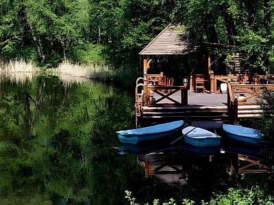 - Водные развлечения: комплекс имеет собственное озеро с обустроенным пляжем, где можно отдохнуть на шезлонгах или покататься на лодке. Также доступна рыбалка для любителей спокойного отдыха.