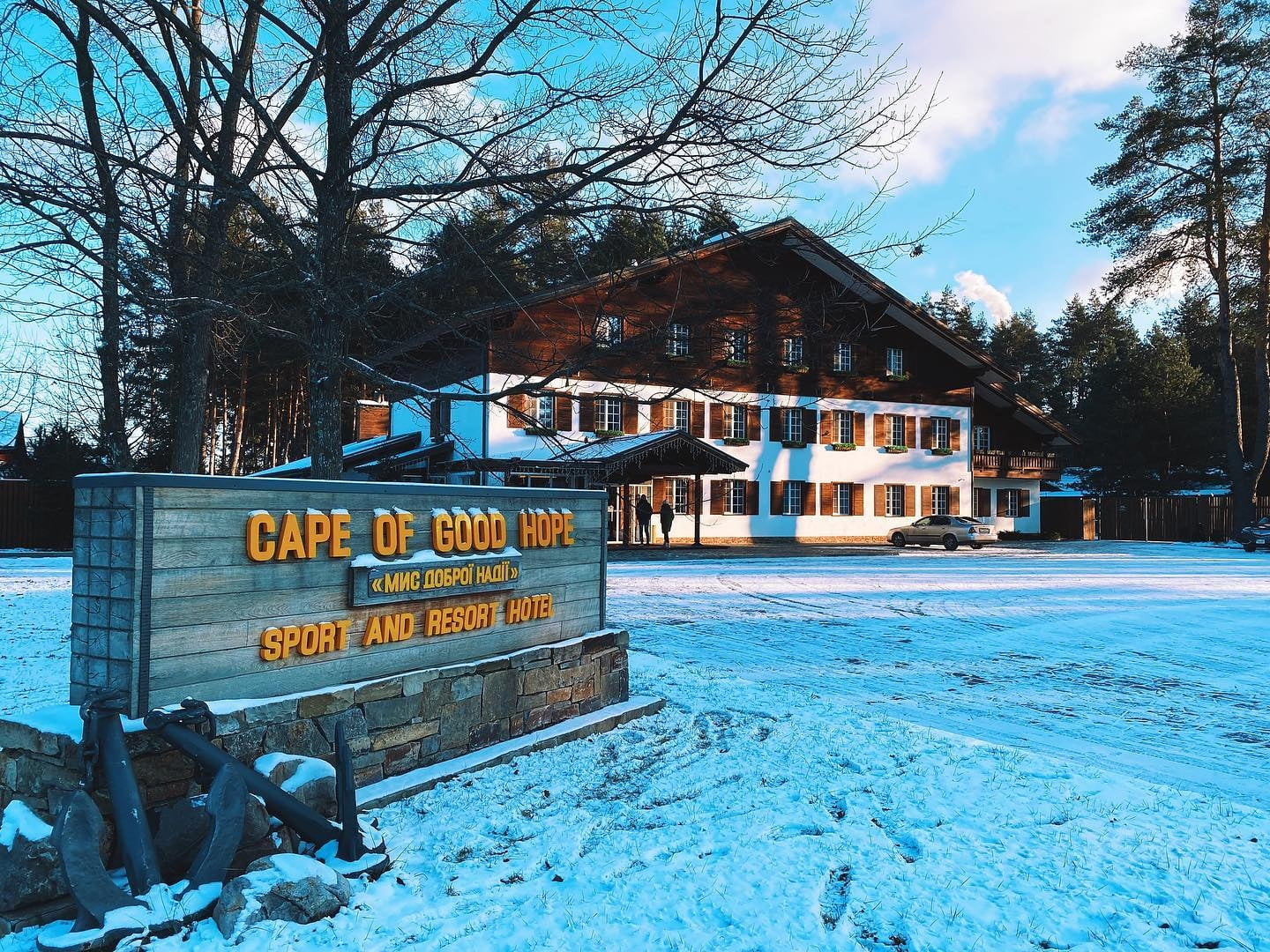 Загородный комплекс «Мыс Доброй Надежды» расположен в живописном уголке Полтавщины, на берегу реки Ворскла, среди соснового леса. Это пространство для отдыха, где сочетаются природа, комфорт и разнообразие активностей. Комплекс подходит как для семейных поездок, романтических уик-эндов, так и для корпоративных мероприятий. Удобное расположение вблизи Полтавы делает его доступным для коротких поездок без длительных переездов.