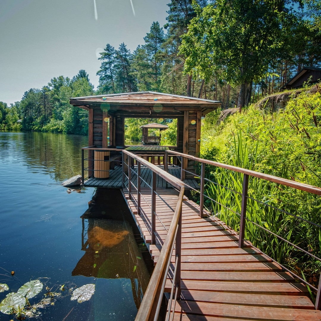 Для компаний предусмотрены беседки разных форматов, в том числе на воде и с возможностью гриля.