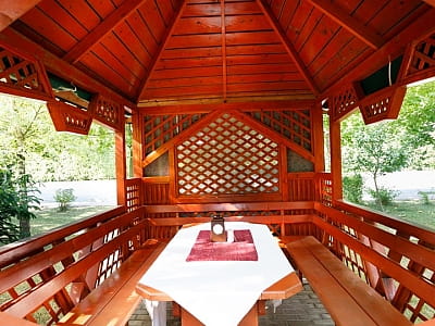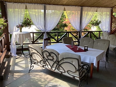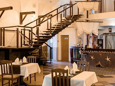 На территории функционирует ресторан, который предлагает вкусные блюда украинской кухни. В наличии - пять отдельных залов, включая детский ресторан «Буратино», оформленный в сказочном стиле. Ресторан также организовывает фуршеты, празднования, банкеты и другие события. На открытом воздухе - мангал и беседки, где можно отдохнуть в компании друзей. Самостоятельное приготовление пищи не предусмотрено, однако профессиональная кухня комплекса удовлетворит вкусы самых требовательных гостей.