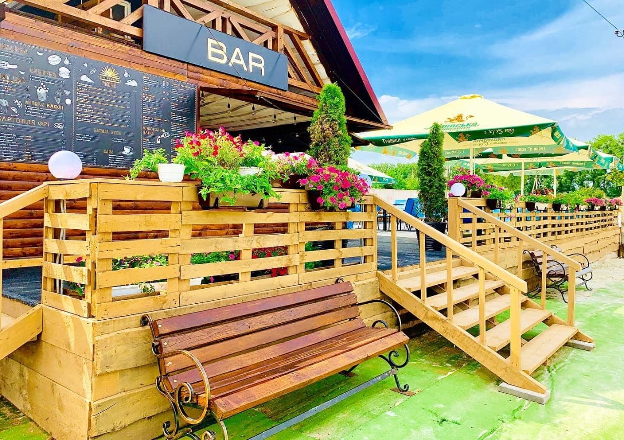 На базе отдыха "Palmira Resort" работает бар с большим выбором как алкогольных и безалкогольных напитков и готовят ограниченное количество блюд, преимущественно пиццу и позиции мангал меню. Сесть можно на удобной террасе за столиками.