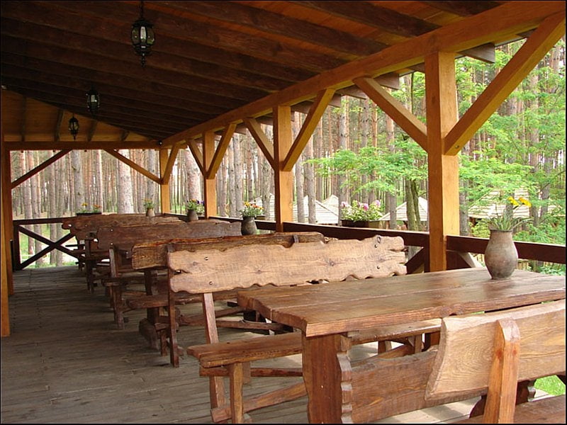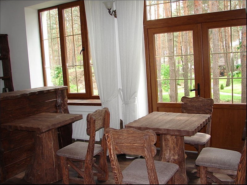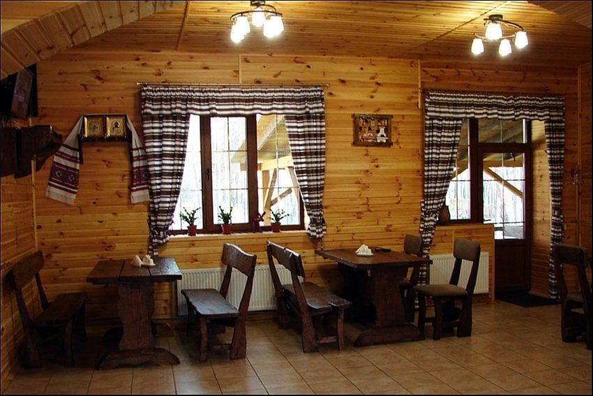 На территории комплекса работает кафе-бар с двумя залами, камином и большой летней террасой. Здесь готовят блюда украинской кухни, доступно мангал-меню и специальные блюда под заказ, в частности из дичи. Кафе подходит как для ежедневного питания, так и для организации банкетов, свадеб, корпоративов и других праздничных мероприятий. Также есть отдельный банкетный зал, который при необходимости трансформируется в конференц-пространство.