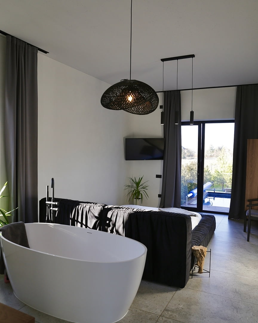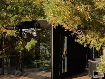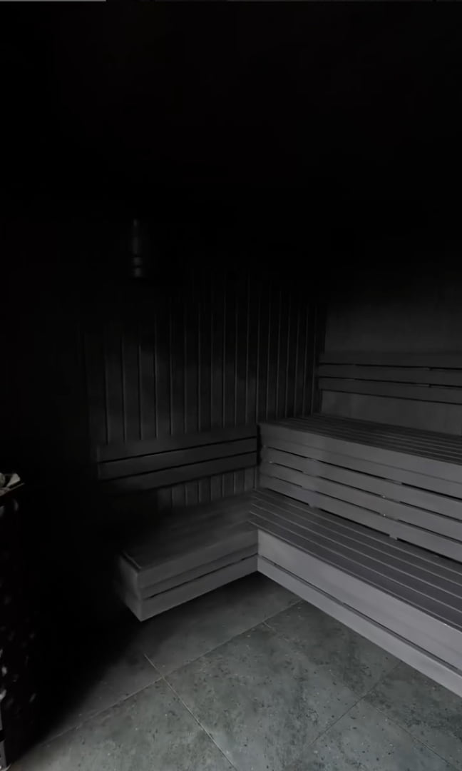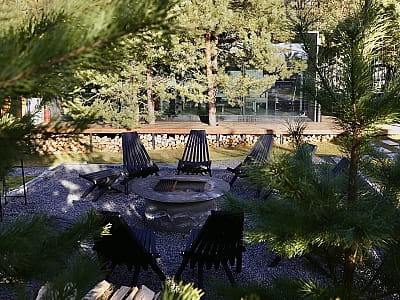 - SPA-зона с горячим чаном под открытым небом и баней с панорамными окнами.