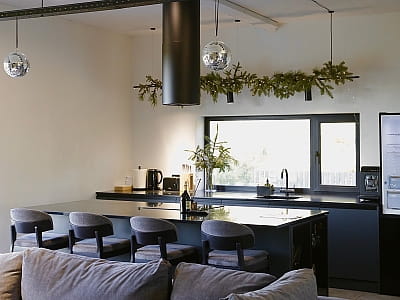 На территории виллы есть просторная терраса с газовым грилем, мангал с дровами и современная кухонная зона в общей комнате, которая позволяет готовить самостоятельно. Для праздничных событий Pine View сотрудничает с профессиональными кейтеринговыми компаниями, которые предлагают банкетное обслуживание, сервировку и доставку изысканных блюд.