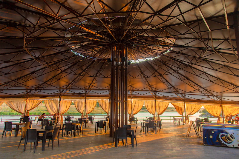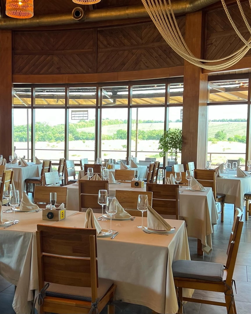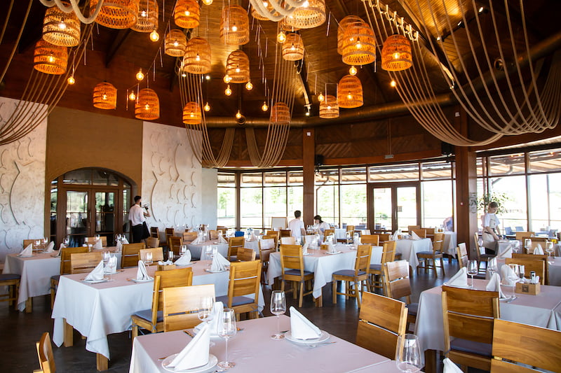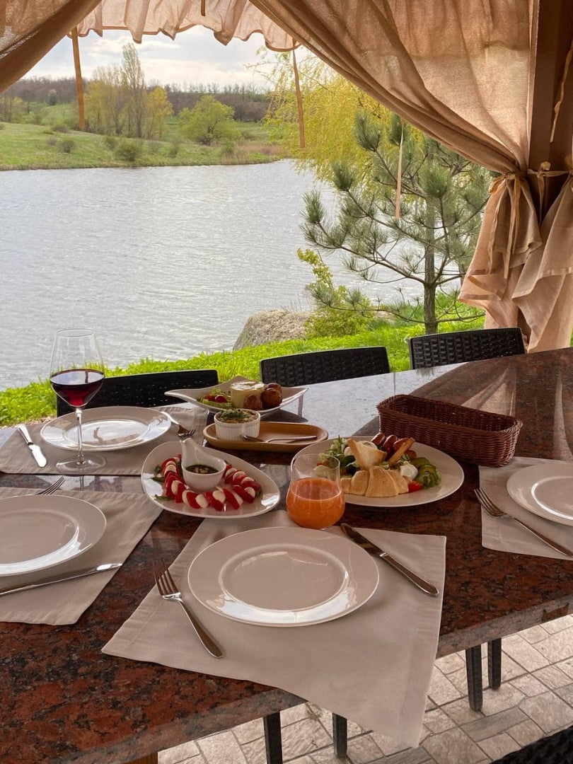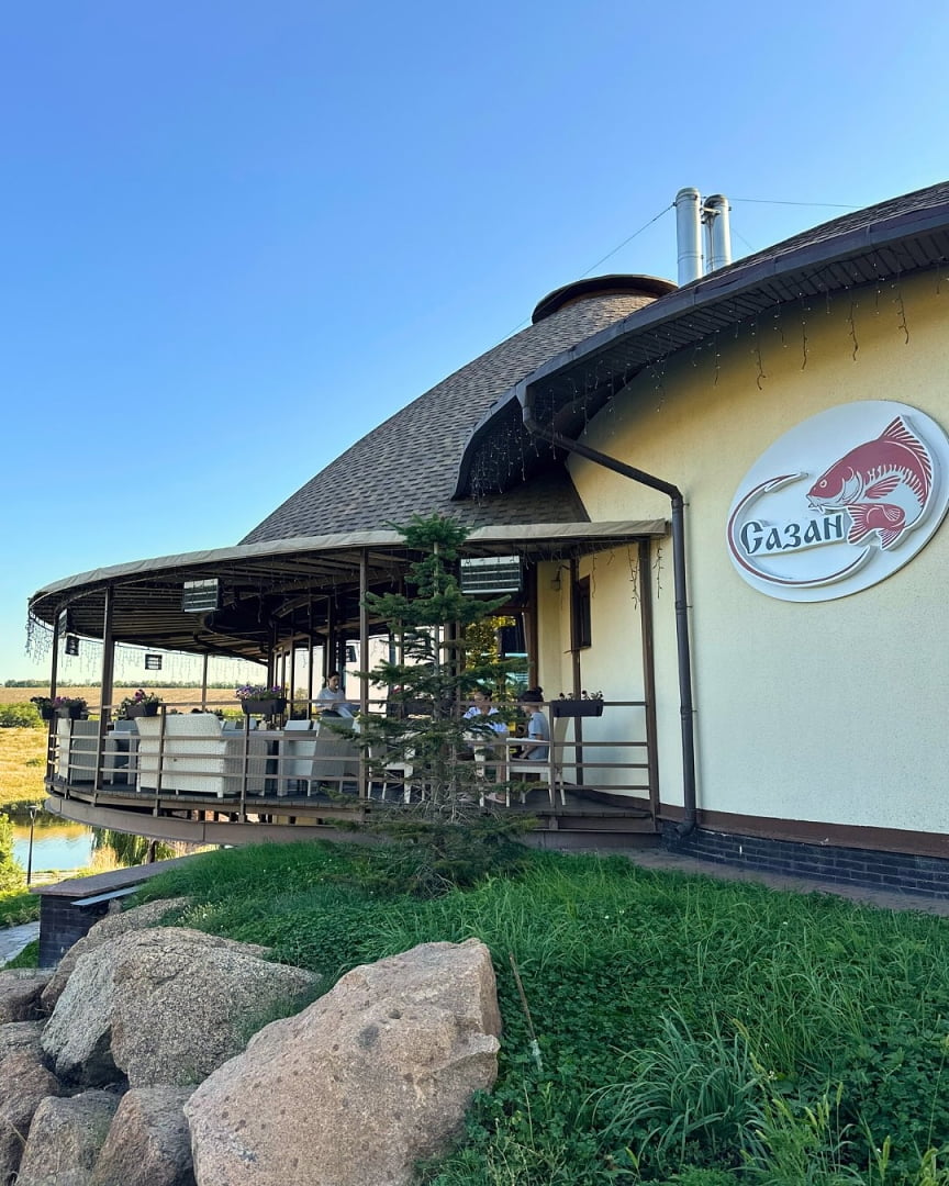 На территории комплекса работает ресторанный комплекс «Сазан» с панорамным видом на озеро Ташлык. Основной акцент сделан на авторских рыбных блюдах и традиционной украинской кухне. В теплое время года гости могут отдыхать на открытой террасе или в беседках у воды. Для пляжного отдыха действует бар «Папай», расположенный непосредственно на пляже, с напитками, снеками и пиццей собственного приготовления. Ресторанный комплекс также принимает банкеты, торжества и семейные события.