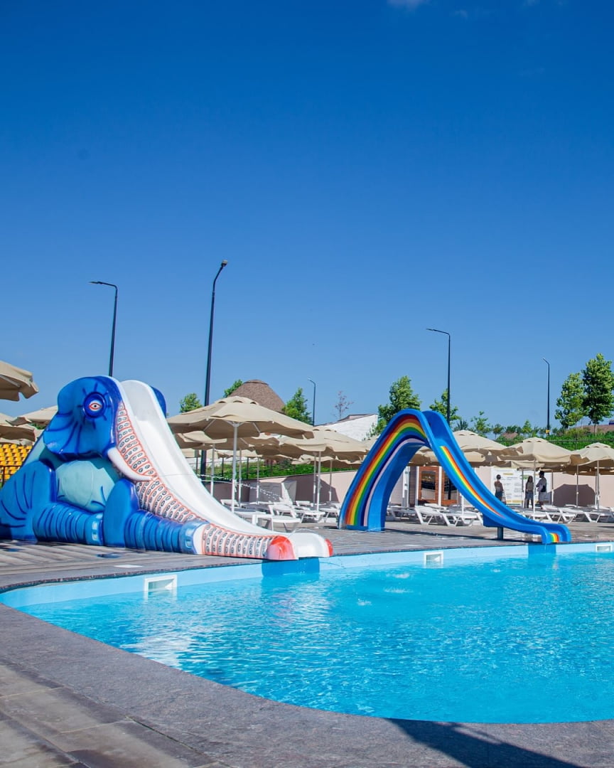 | Бассейн | 8 открытых: 2 просторных бассейна (глубина 1,20–1,40 м), 3 детских бассейна с подогревом — разной глубины для разного возраста, бассейн глубиной 1,20 м, бассейны глубиной 90 см и 1,20 м с горками, бассейн 60 см с подогревом и водными горками |