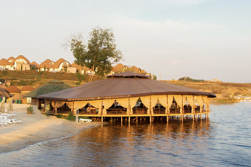 | Кухня | ресторан «Сазан» с авторскими рыбными блюдами и традиционной украинской кухней, бар «Папай» с летней террасой |