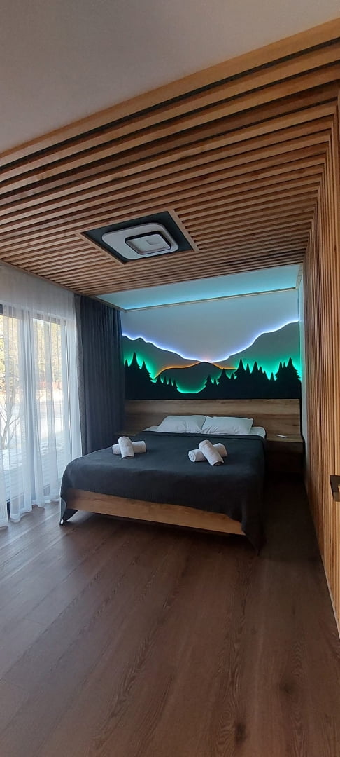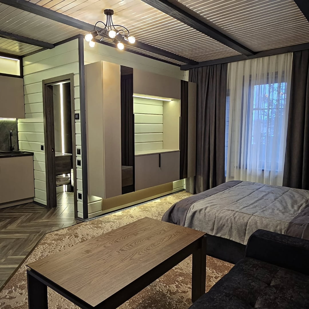 Смерекова Хата предлагает различные форматы проживания: коттеджи для больших компаний, отдельные дома, семейные номера и домики на берегу озера с панорамными окнами. Все варианты оборудованы удобствами для комфортного пребывания, а часть домов имеет собственные сауны или джакузи. Преимуществом является уединение, тишина и близость к природе, а также возможность выбрать жилье под разное количество гостей.