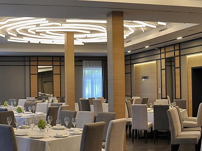 Гостям доступен ресторанный комплекс с авторской кухней. Блюда, созданные шеф-поваром, отличаются утонченным вкусом и оригинальной подачей. В меню представлены как классические блюда, так и интересные кулинарные эксперименты. В ресторане действует барная карта с разнообразными коктейлями, а также винный лист с отборными напитками.