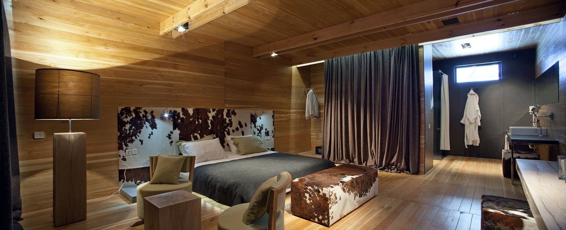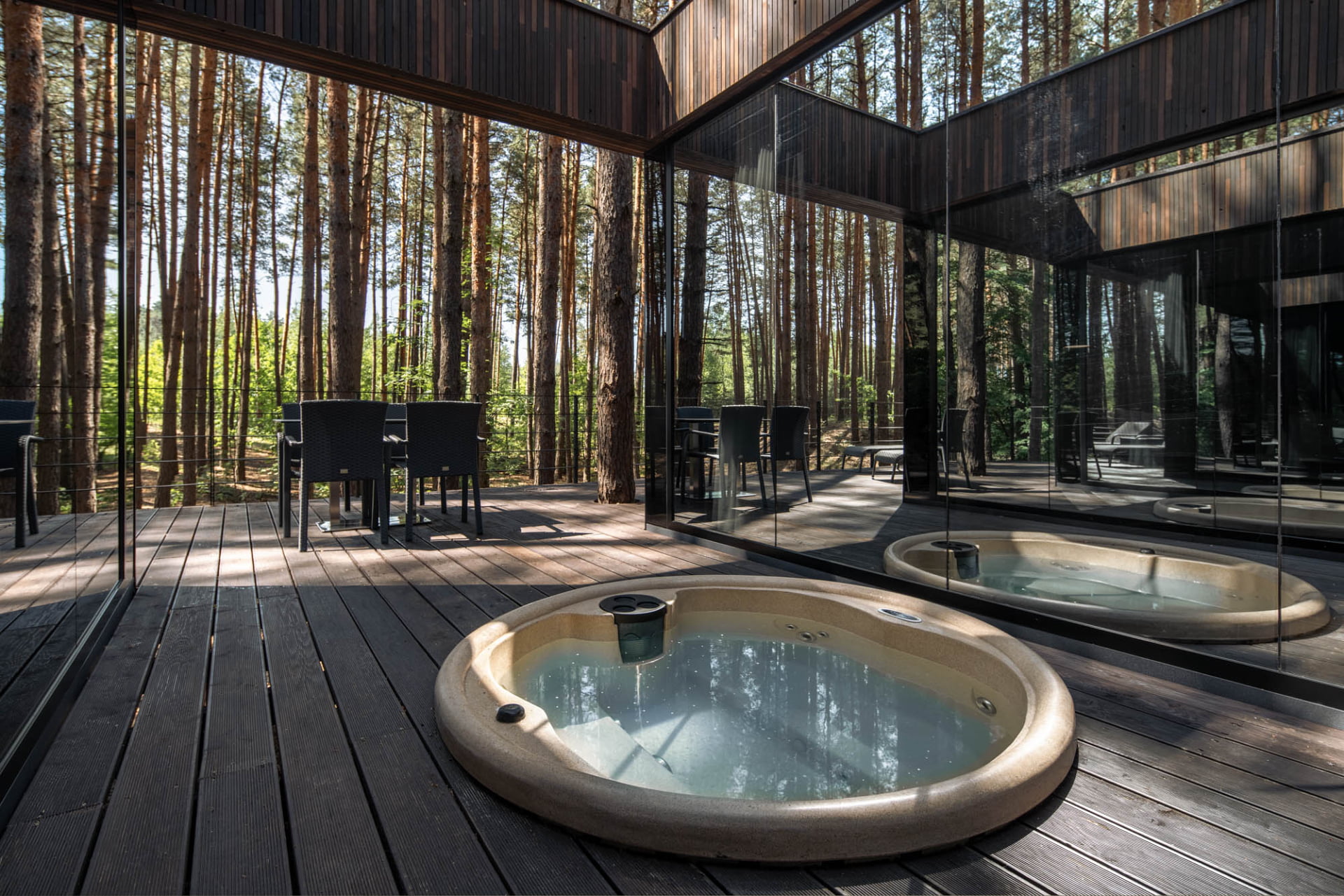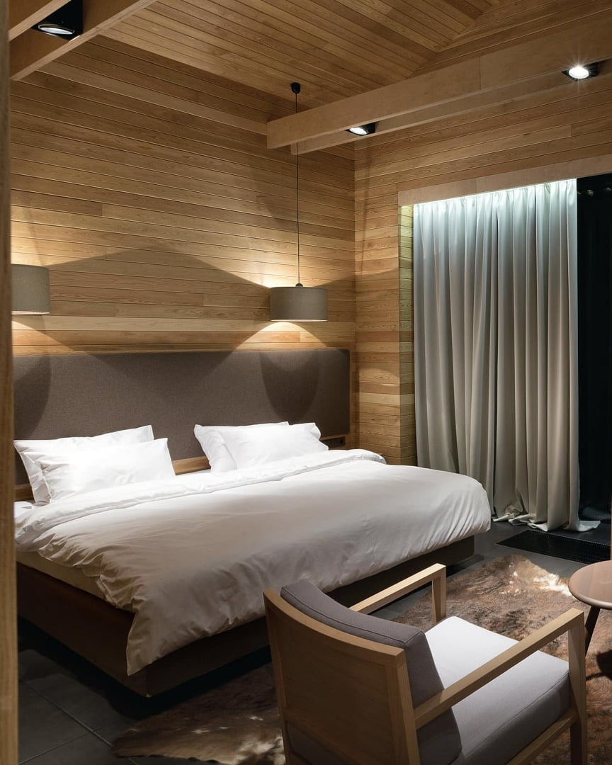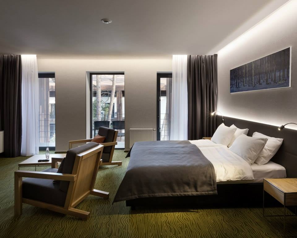 Номера отличаются по размеру и планировке, с балконами или панорамными окнами, что позволяет любоваться лесными пейзажами. Коттеджи обеспечивают приватность и свободу пространства, что особенно ценится гостями, которые приезжают в большой компании или с семьей.