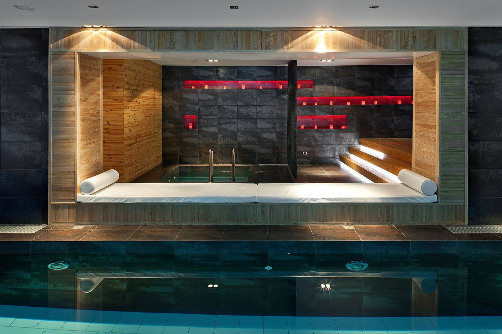 Спа-центр включает различные виды саун (хамам, санариум, традиционная парная), джакузи с гидромассажем и фитобар для легких перекусов и напитков, что помогает восстановить тело и разум.