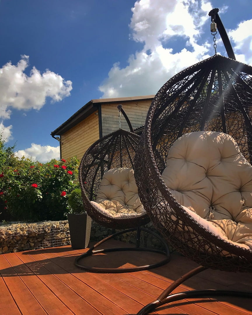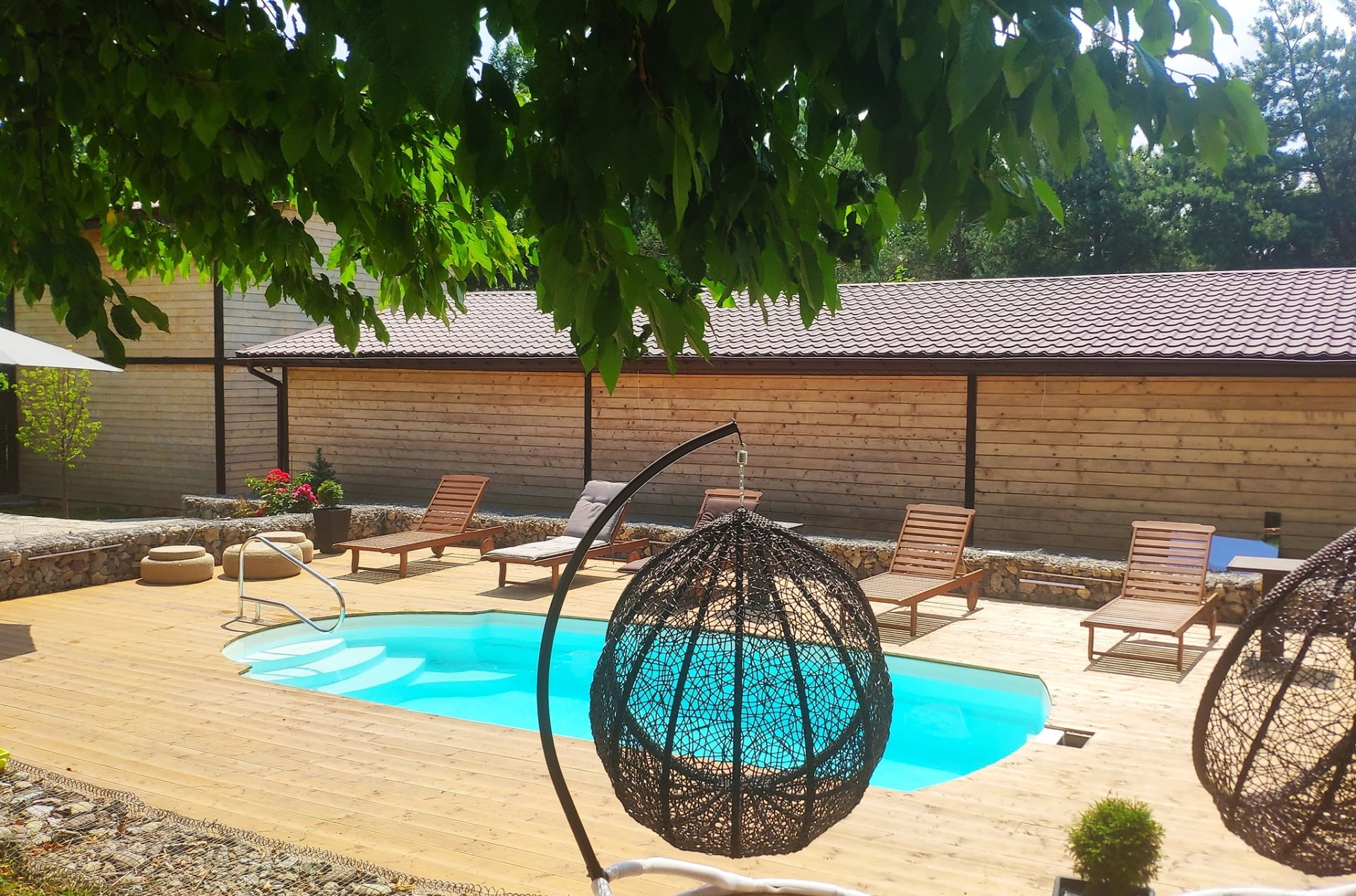 Комплекс ориентирован как на спокойный, так и на активный отдых. Для релакса доступен открытый бассейн с лежаками и зонтиками, а также уютные беседки на берегу реки с мангалами. Особую атмосферу создают вечера на природе и большие садовые качели, с которых можно любоваться звездным небом.