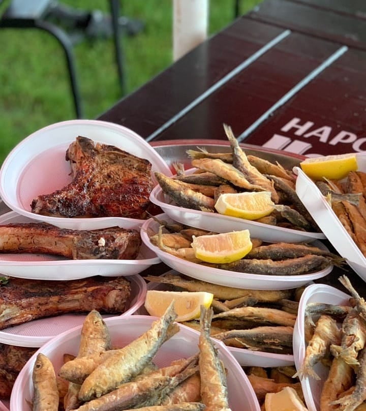 В течение дня на территории работает кафетерий, где гостям предлагают прохладительные напитки, кофе, мороженое, молочные коктейли и блюда на гриле. Для посетителей кемпинга предусмотрена общая кухня с необходимыми удобствами для самостоятельного приготовления пищи. Также комплекс предоставляет возможности для организации праздничных мероприятий с кейтерингом и обслуживанием.