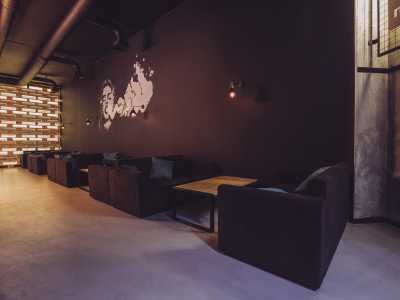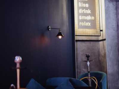 Интерьер заведения порадует спокойным, интересным оформлением в стиле лофт. Уже в первые минуты нахождения в помещении ощущается некоторое спокойствие и умиротворение. Помещение хоть и не большого размера, однако, очень уютное и приятное. Темные тона идеально сочетаются со слегка приглушенным мягким светом барной стойки и светильников. Гостям предлагается разместиться на комфортных диванчиках, с интересными поддерживающими подушками. Низкий и широкий столик позволяет без проблем разместить на нем кальян и необходимые принадлежности.