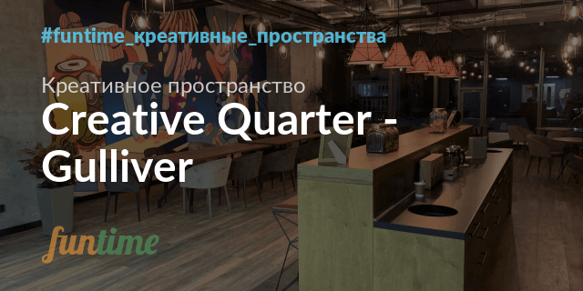 Креативный квартал выходит за рамки привычного коворкинга. Фактические Creative Quarter – Gulliver является полноценным бизнес отелем, где собираются деловые люди, успешные предприниматели, фрилансеры в поисках новых идей и решений. Пространство находится в популярном БЦ «Гуливер», занимает целых 2 этажа и является детищем известного IT специалиста Романа Хмиля. Основной идеей создания этого места стало выполнение многочисленных, уютных и стильных общих зон с уникальной атмосферой. Благодаря этому обычная, привычная работа становится источником получения истинного удовольствия и позитива.