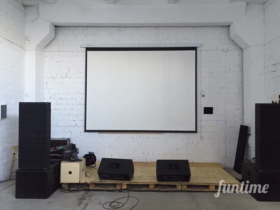 Из оборудования мы можем предложить экран 2х3 метра, проектор, микрофон, колонки, направленное профессиональный свет, стулья. В формате вечеринки может быть размещено до 120 человек, с рассадкой - до 80".