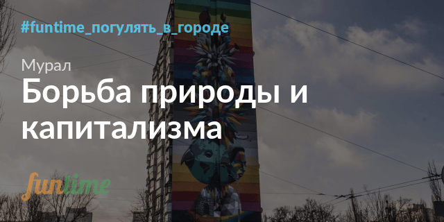 Возле метро "Академгородок" разместился огромный мурал изображающий причудливую птицу с одной стороны и маску напоминающую лицо человека с другой. Этот мурал олицетворяет борьбу природы и капитализма, как и большинство работ испанского художника Оскара Сан Мигель Эрик - окрестившего себя Okuda. Его стиль стрит-арта сложно с чем-то спутать - яркие краски, геометрические фигуры. Ничего не напоминает?) Если ответ положительный, то освежим вашу память. Уже несколько лет по пригородам столицы курсируют электрички раскрашены баллончиком испанского уличного художника.