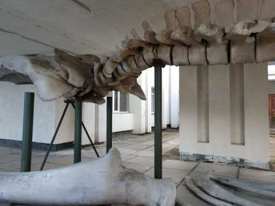 Представленный в Киеве скелет синего кита является совсем другой историей. Он главным образом выступал в роли своеобразного аттракциона, считался предметом показной гордости, которая была свойственна бывшим руководителям великой страны. Увидеть фрагменты кита можно было на многочисленных черно-белых фото, плакатах и картинках. С уходом эпохи социализма, тотального дефицита пропало и внимание к столь необычному экспонату. Как его удалось демонтировать и установить на новое место остается загадкой. Вероятно, люди, которые занимались его разборкой и монтажом еще надеялись на восстановление былой славы останков животного. Им удалось собрать все позвонки, подогнать каркас, отдельные части скелета и собрать их воедино.