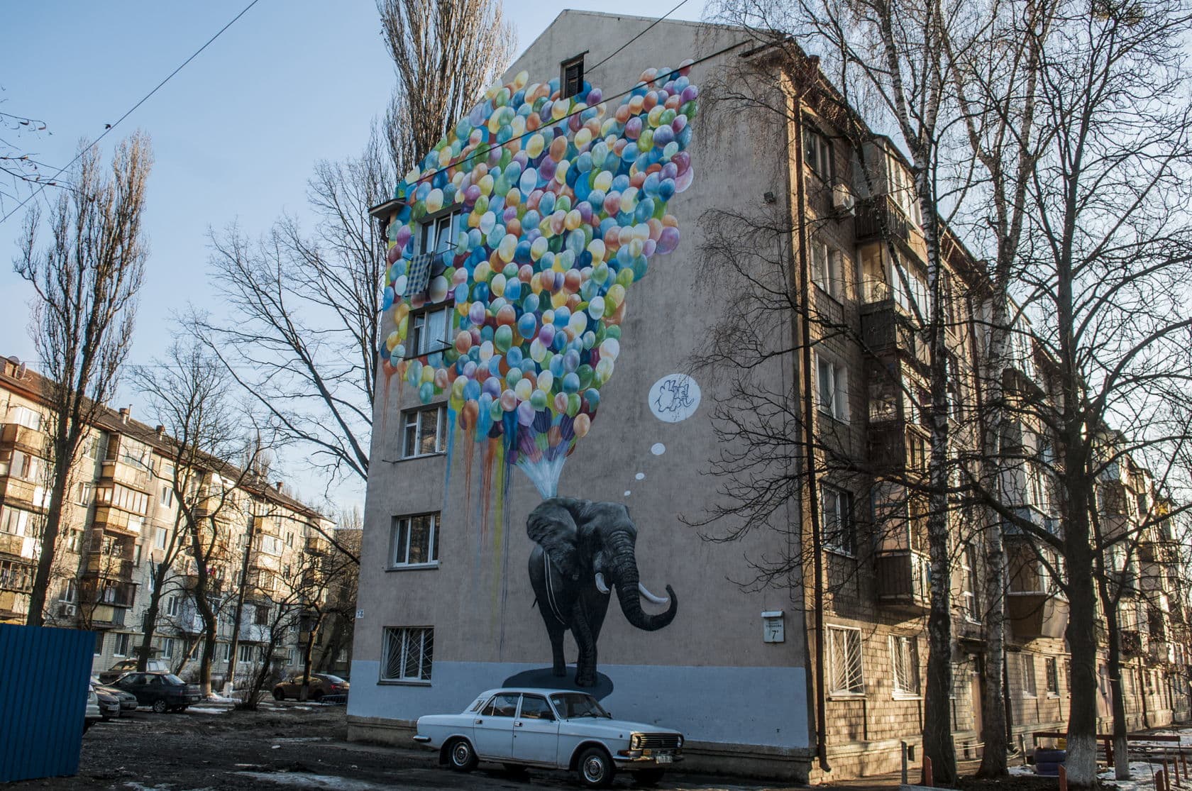 Теперь улица Туполева ассоциируется не только с обителем коррупции МРЭО-2. На ней появился очень необычный слон. С кисти Александра Корба (Украина), при поддержке "Sky Art Foundation", сошел этот обитатель африканских саван и бушей. Самое большое сухопутное млекопитающее прихватило огромную охапку шариков и и поэтому рисунок окрещен как мурал "Летающий слон". Посмотреть на настенную живопись можно на улице академика Туполева, 7Б.