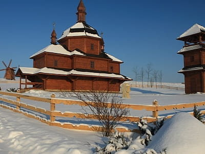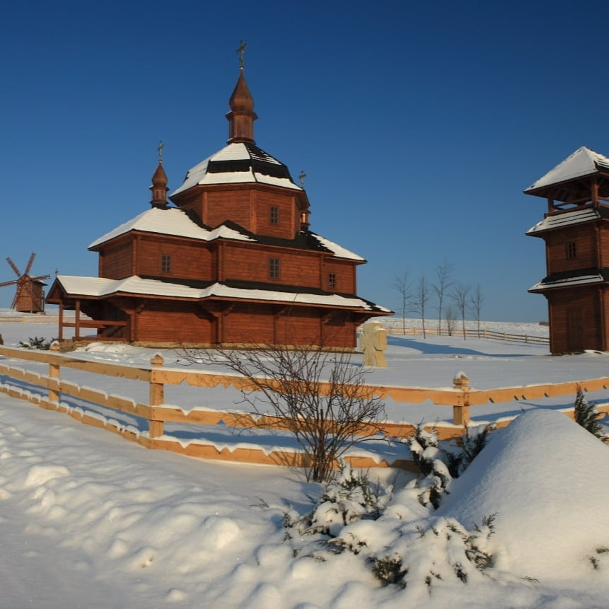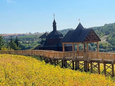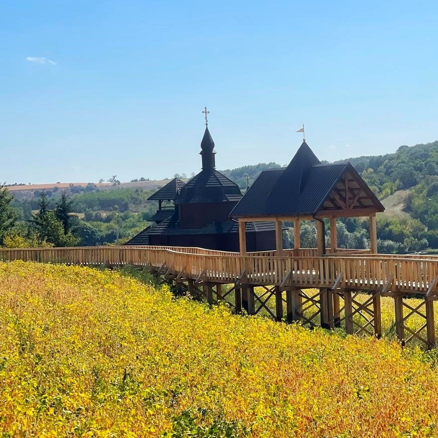 Среди достопримечательностей комплекса - воссозданная казацкая церковь XVIII века, школа с колокольней, ансамбль мельниц, карпатские качели, аутентичные казацкие кресты, скульптурная композиция «Семь Святых», мостик «Скифский оберег» и другие уникальные локации.
