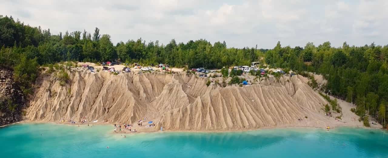 Сегодня карьер стал живописным водоемом, который привлекает многочисленных туристов, и на его территории можно отдыхать. Здесь кристально чистая вода бирюзового цвета, высокие скалы, покрытые лесом, и искусственные белые горы, которые создают уникальный пейзаж и ведут к пляжу.