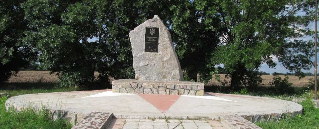 История возникновения монумента предельно простая. С приходом независимости нашей страны, в населенном пункте Добровеличковка, 1991 году, в результате научных расчетов был открыт географический центр. К 2002 году, при поддержке местной власти, установленный знак, оповещающий о геометрическом центре Украины, был заменен на величественную стелу, выполненную из гранита. Она изготовлена неправильной формы и доходит в высоту до 3 метров. В верхней ее части закреплена информационная табличка, на которой изображен Малый государственный герба страны.