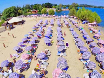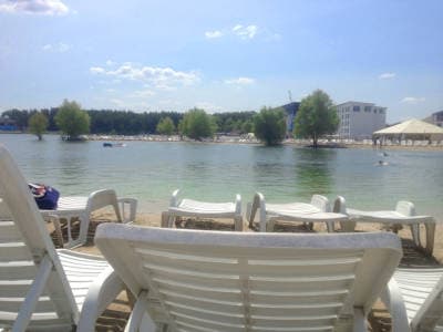 Ну а если вам бюджет позволяет и вы цените тишину и комфорт, тогда Вас ждут на платном комфортабельном пляже «Лобстер», вход на который стоит 50 гривен с человека в будние дни и 100 гривен в выходные, а сам пляж работает с 9 часов утра и до 9 часов вечера. За эти деньги у вас будет свой лежак, большой и широкий пляж и два волейбольных поля. Пляж есть частью комплекса Рестоград «Империя», потому рядом также находится ресторан с кухней, бар, кальян-бар.