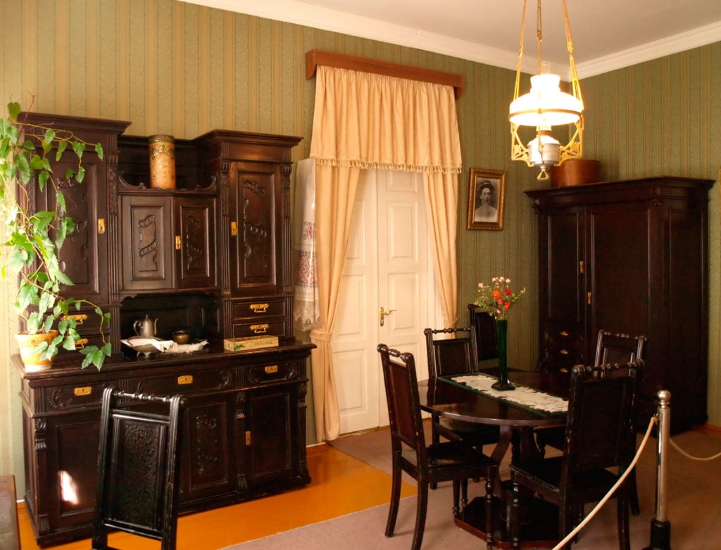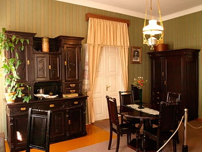 Мемориальная зона воссоздает интерьер начала ХХ века: здесь можно увидеть аутентичную мебель, фотографии, посуду и личные вещи семьи Королевых. Представлены документы, чертежи, записи Сергея Павловича, его одежда, а также уникальный экспонат - прядь волос после первой стрижки будущего конструктора.