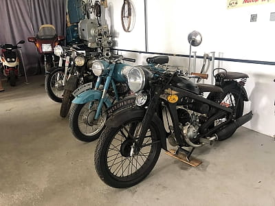 - Частная коллекция Андрея Гладуна включает уникальные мопеды, скутеры, мотоциклы и велосипеды, среди которых и «велосипед-кузнечик» из Италии XIX века.