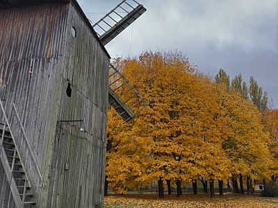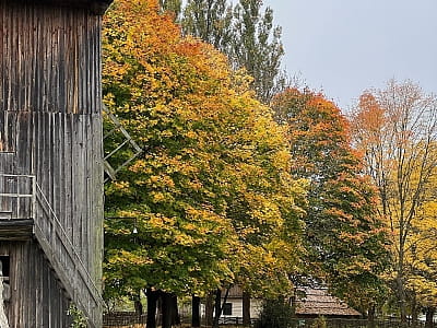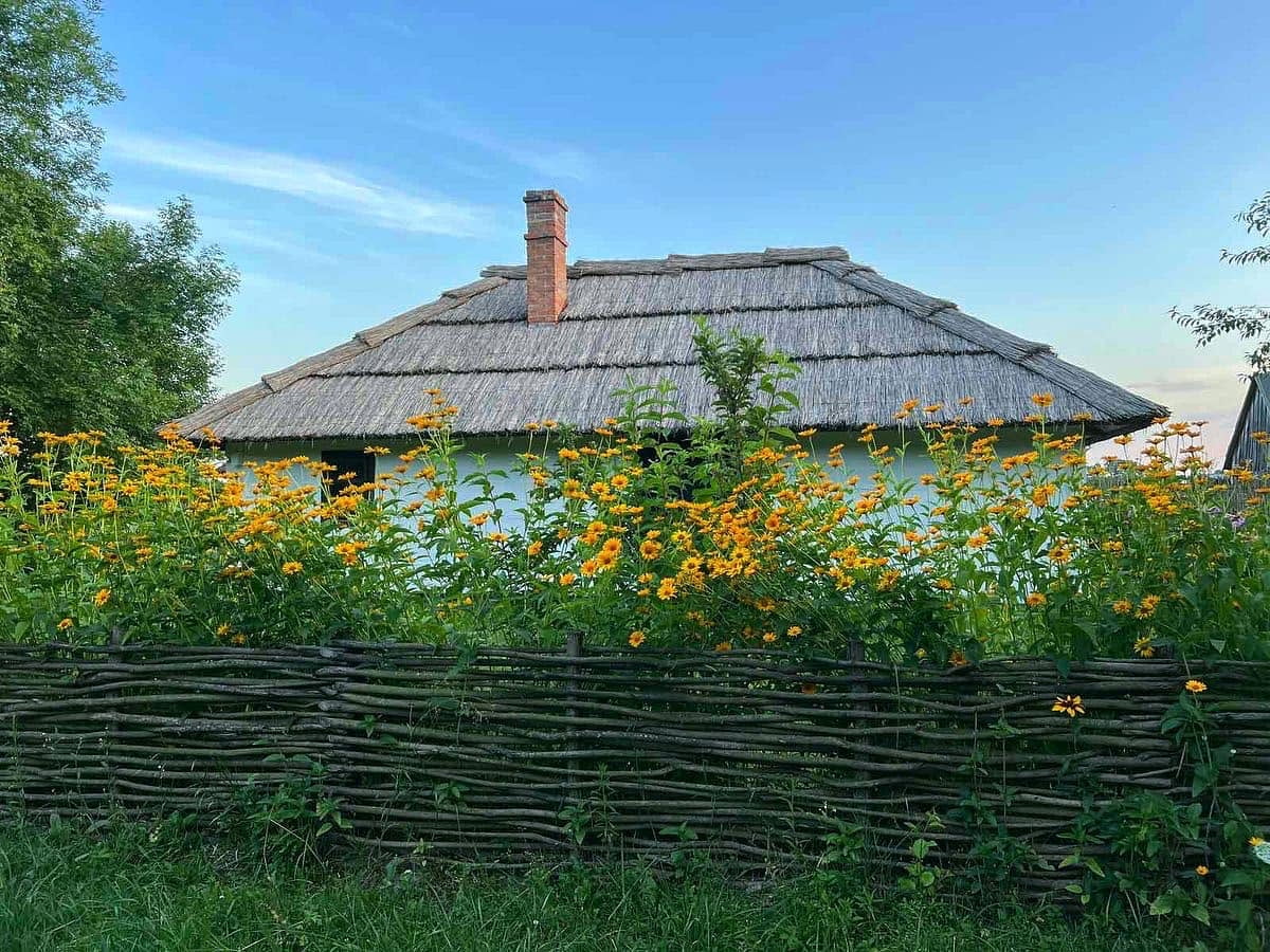 Самая яркая часть музея - скансен под открытым небом. Здесь воссоздан типичный сельский двор XIX века: двудольные дома, стодолы, риги, купола, пыльные дома, хлева, колодцы. Настоящая ветряная мельница из села Четвертня, действующая кузница, часовня по образцу храма из Ровенской области, казацкий зимовник и памятник казаку Мамаю создают неповторимую атмосферу.