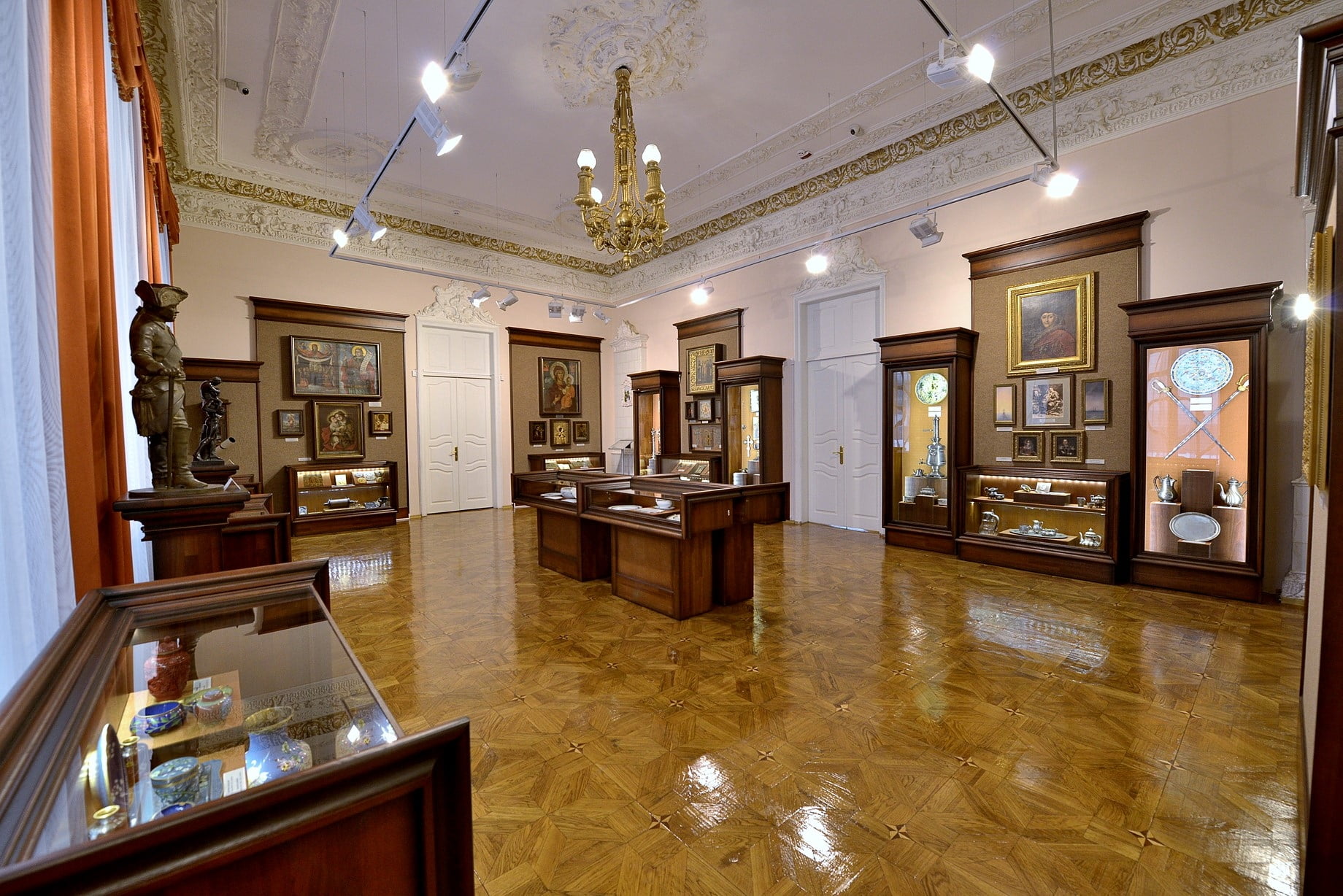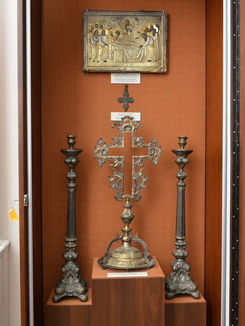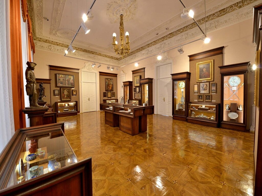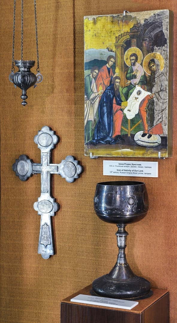 В залах можно увидеть сакральные реликвии, старинные иконы, культовые кресты времен Киевской Руси, серебряные изделия в стиле барокко, предметы казацкой эпохи. Светская часть коллекции представлена изысканным фарфором, столовым серебром, самоварами, редкими ювелирными изделиями и произведениями восточного искусства. Особое внимание привлекают бронзовые скульптуры, антикварные тоггл-приборы, телескопы и микроскопы XIX века.