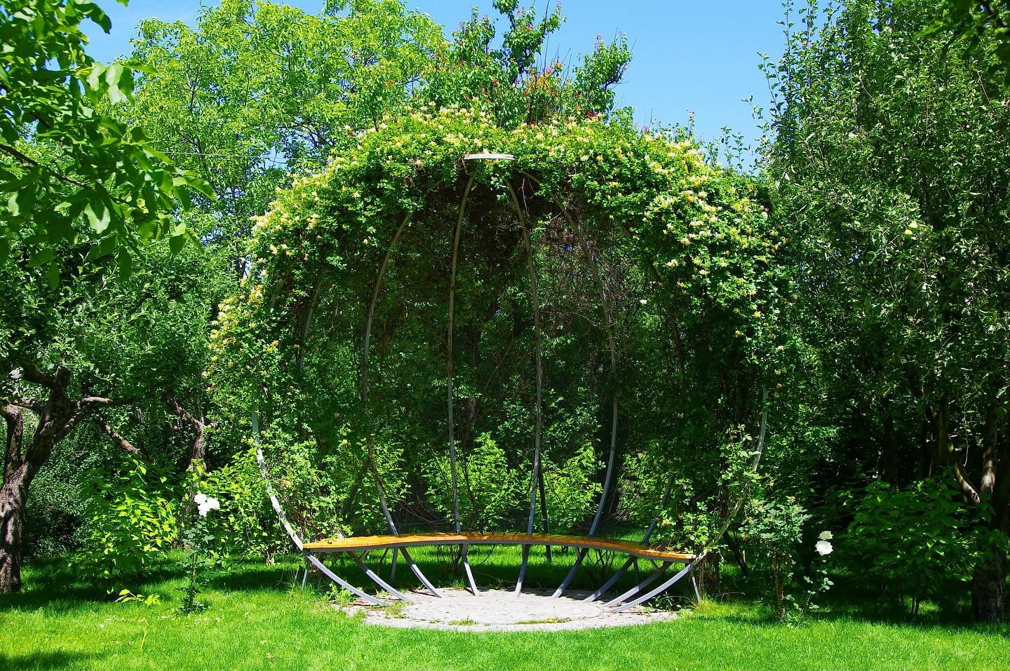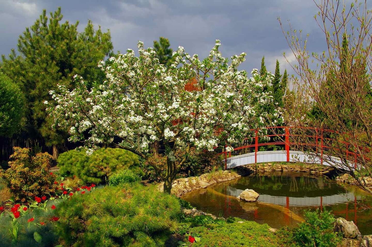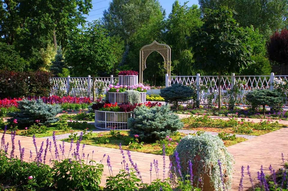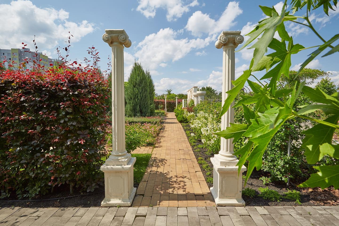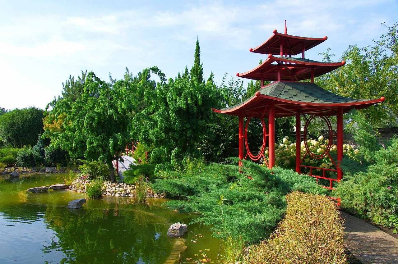 Здесь насчитывается 10 тематических зон: от ароматного сада с пряными травами до французского розария, итальянского дворика, мавританского сада с фонтаном, страны хоббитов, украинского двора и восточного уголка с пагодой, прудом и мостиком.